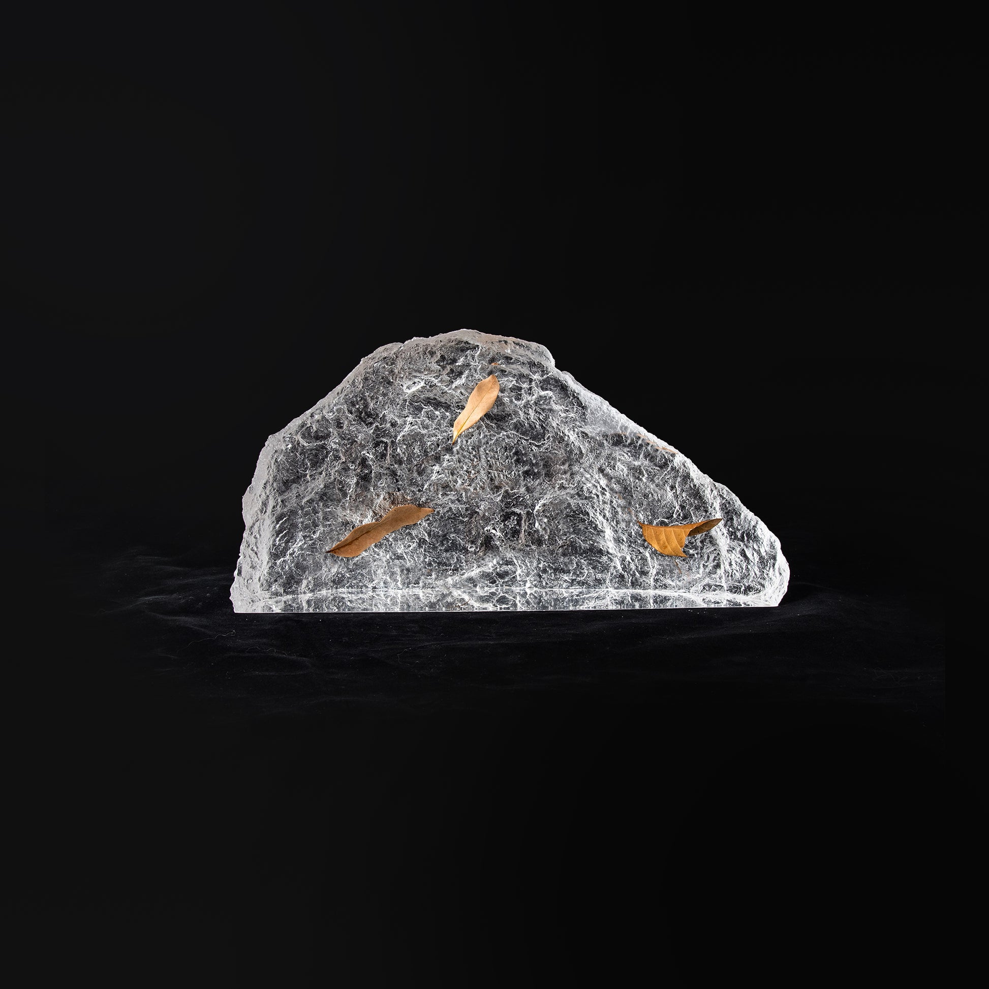 Each piece is handcrafted to emulates the raw, sacred beauty of mountains, embodying the harmony of nature and artistry. The preserved scattered leaves recreate the serene scene of leaves falling in the mountain forests. The use of clear material elevates the visual depth and ethereal ambient, capturing the quiet stillness of an untouched landscape and making it a fitting statement piece for Zen interior design.