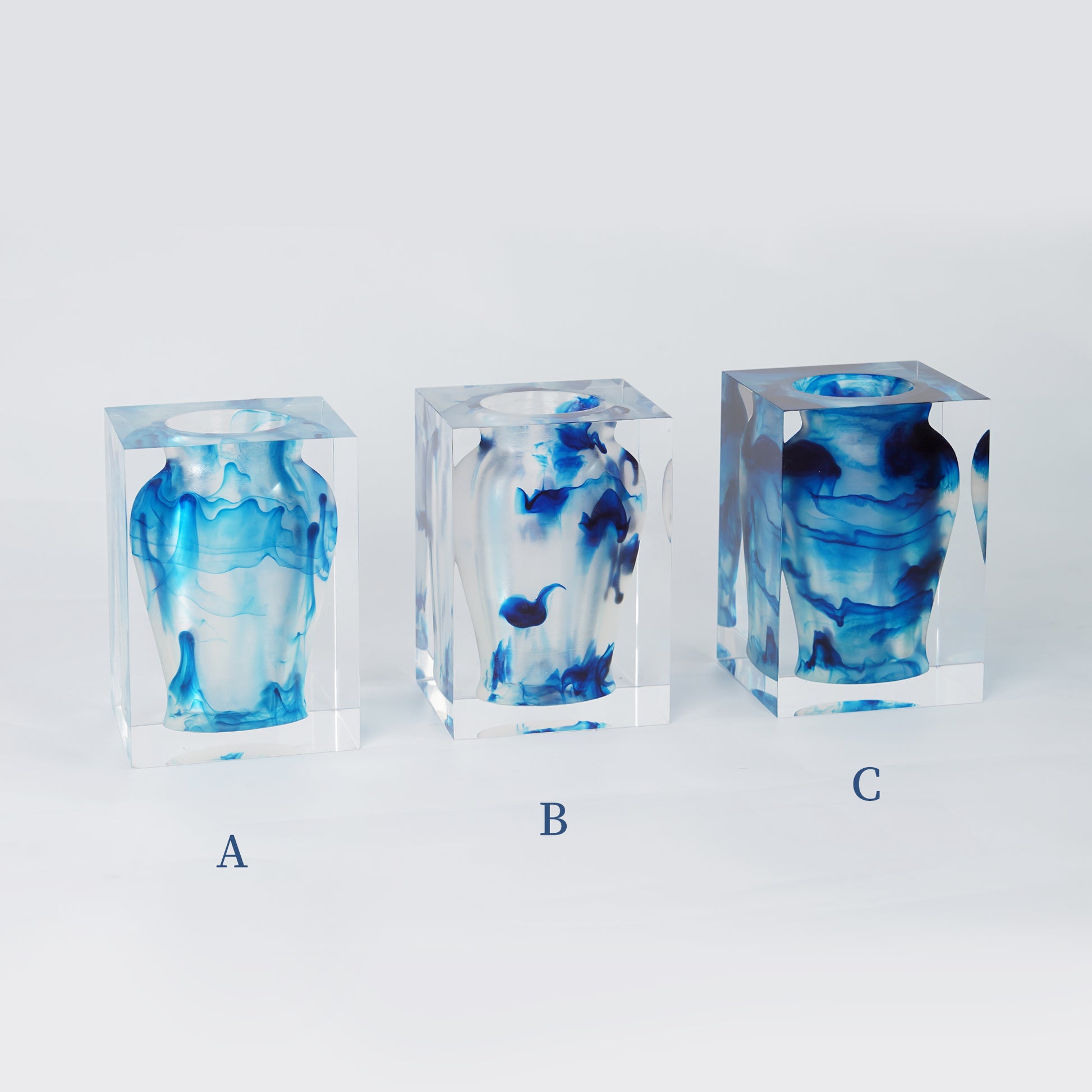 Each piece blends the classic silhouette with Chinese ink wash art, encased in crystal-clear acrylic, as if a frozen moment of tradition in time. These vases offer a vintage charm while, bringing a striking balance of artistry and modern design into your home decoration.