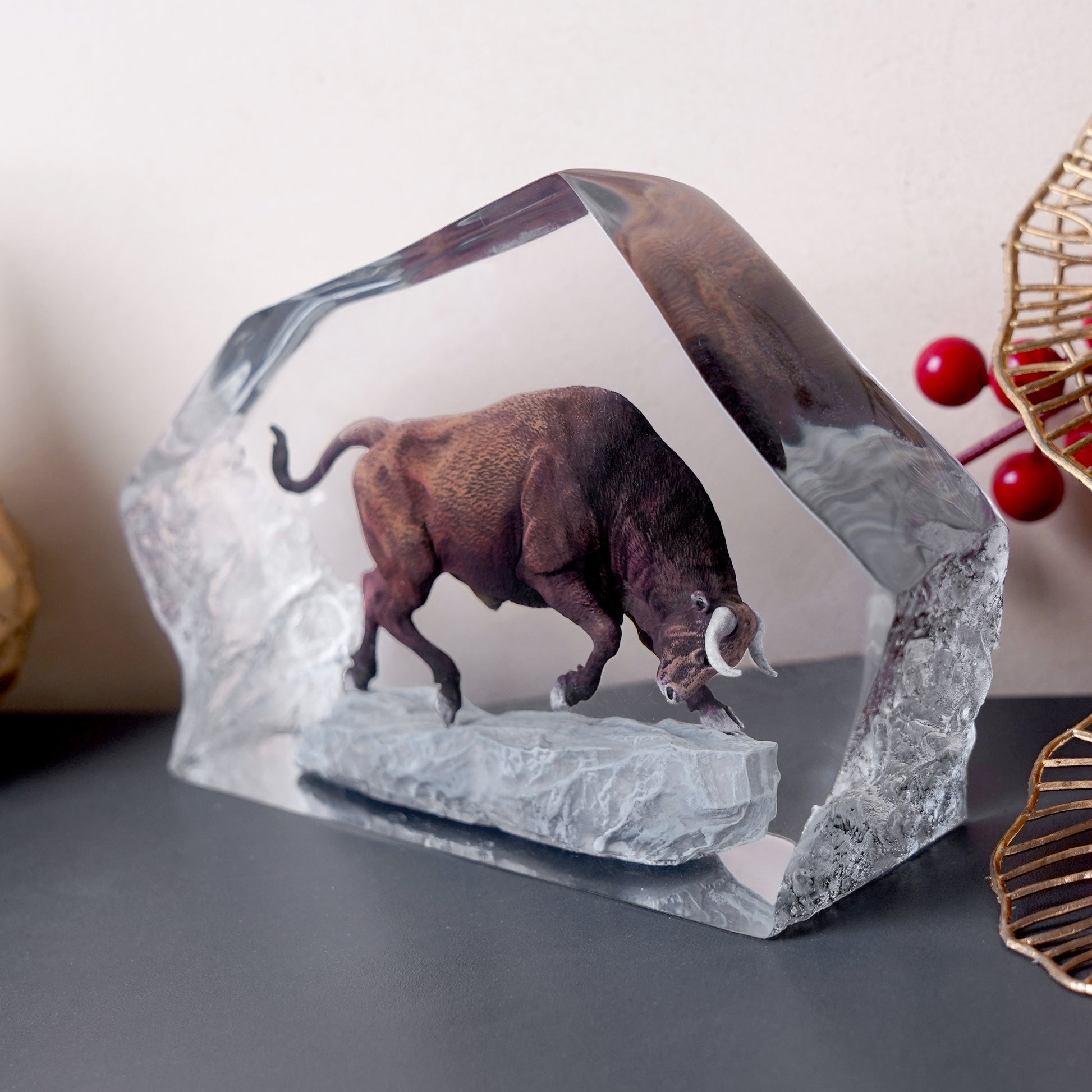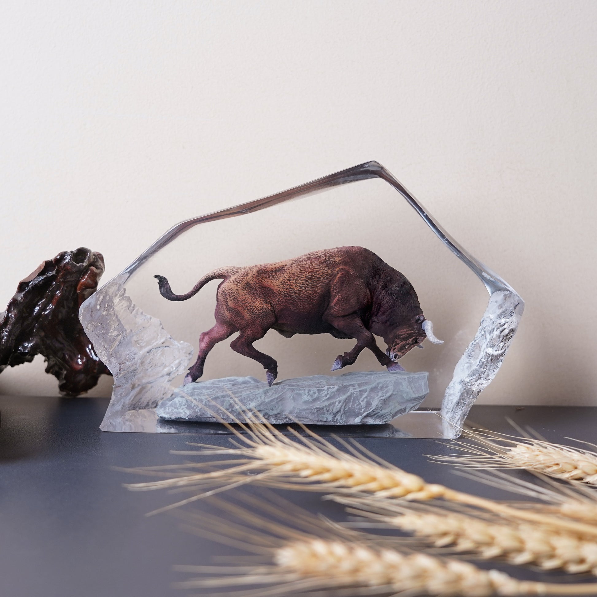 Designed for modern offices and home decor, the dynamic charging bull pose makes it a bold statement piece. The blend of realistic craftsmanship and sleek acrylic design adds a contemporary touch, making it perfect for desks, shelves, or executive spaces. A unique gift for business professionals, investors, or collectors, this ox figurine decor embodies ambition and perseverance, bringing an inspiring presence to any setting.