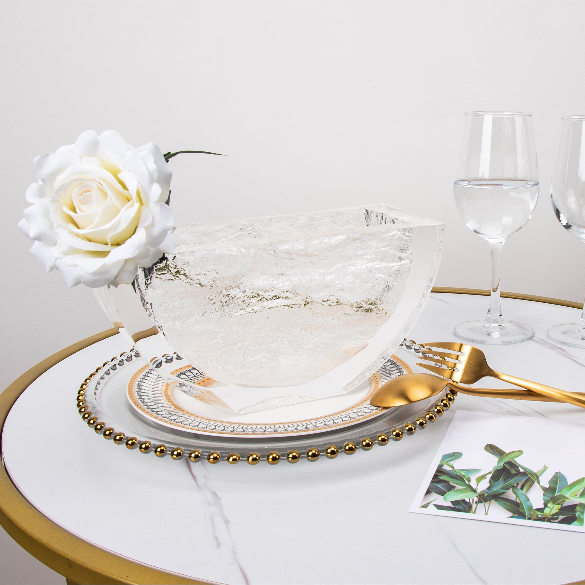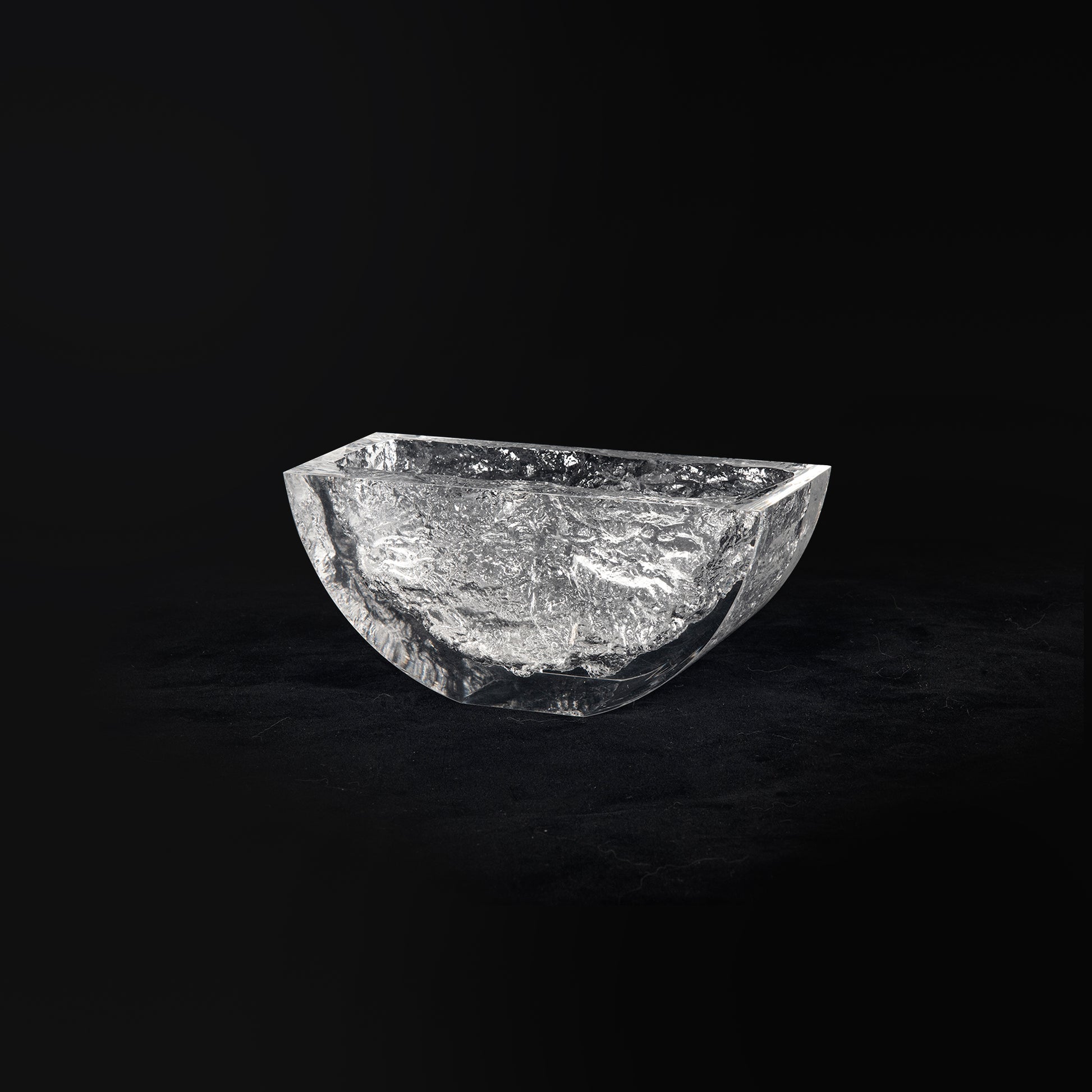 This sculptural vase doubles as both a functional vessel for floral arrangements and standalone art piece. Its perfect balance of intricate glacier texture and geometric shape make this vase versatile enough to blend in to minimalist interior or luxury home decor settings.