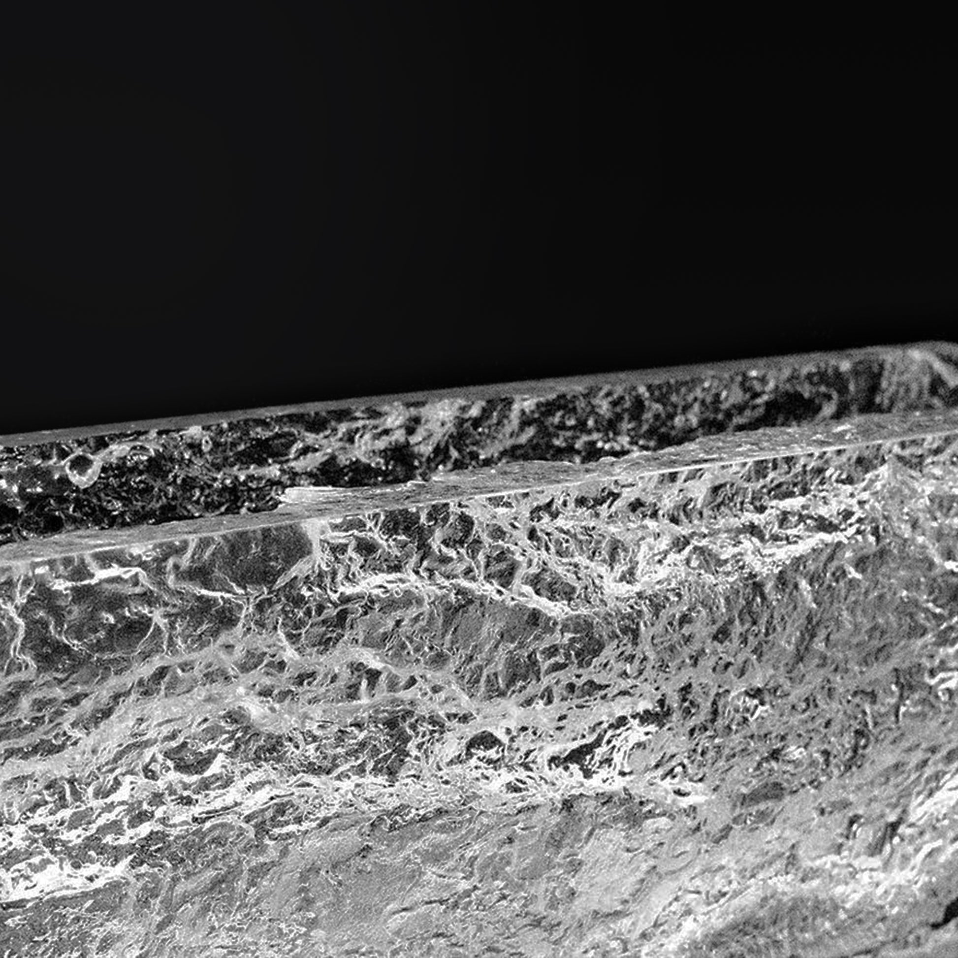 Inspired by glacial landscapes, the Glacier Trough Vase captures nature's frozen beauty in a sleek, elongated form. The long rectangular silhouette pairs clean modern lines with intricate, ice-like textures sculpted within clear acrylic—creating the impression of a frozen riverbed preserved in time.