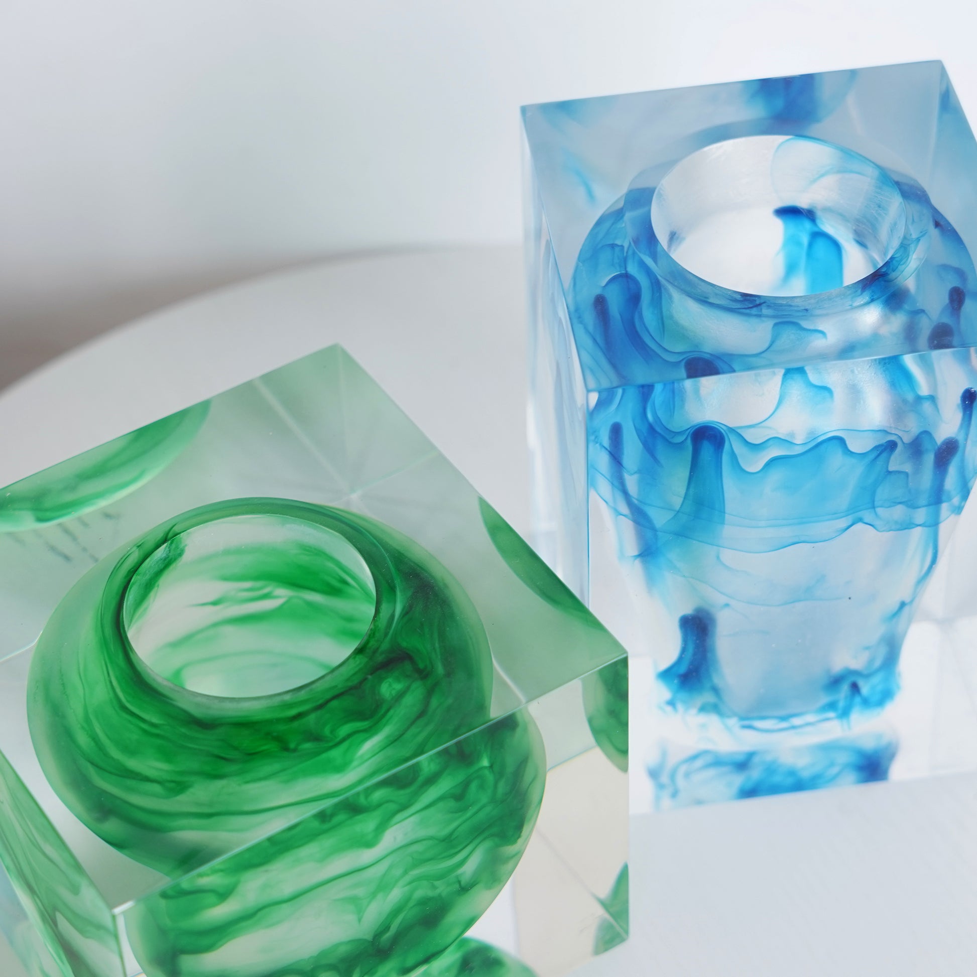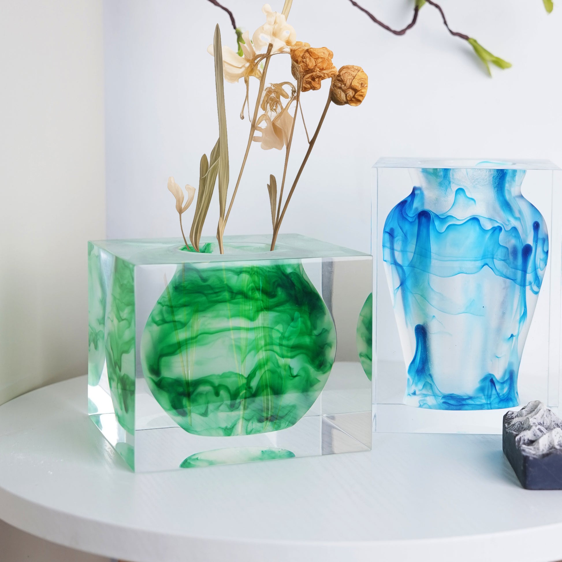 Meet the Ink Wash Series Vases—translucent vases featuring blended emerald green ink arts that flow like brushstrokes suspended in air, evoking a scene of misty rain deep in the forest.