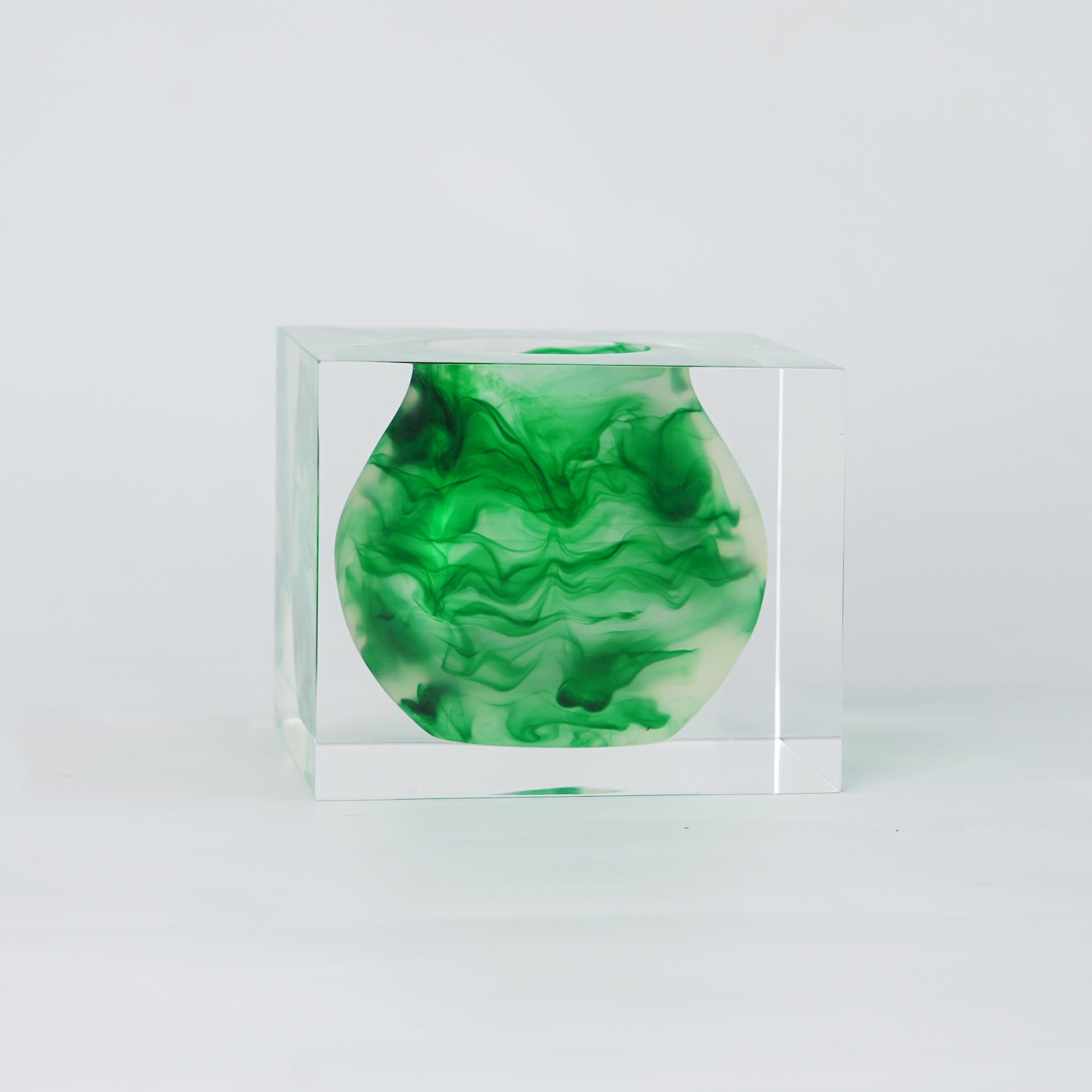 The classic bowl form adding Chinese hand painted patterns, encased in crystal-clear cube acrylic, preserving a moment of cultural artistry and creating timeless elegance to your space.