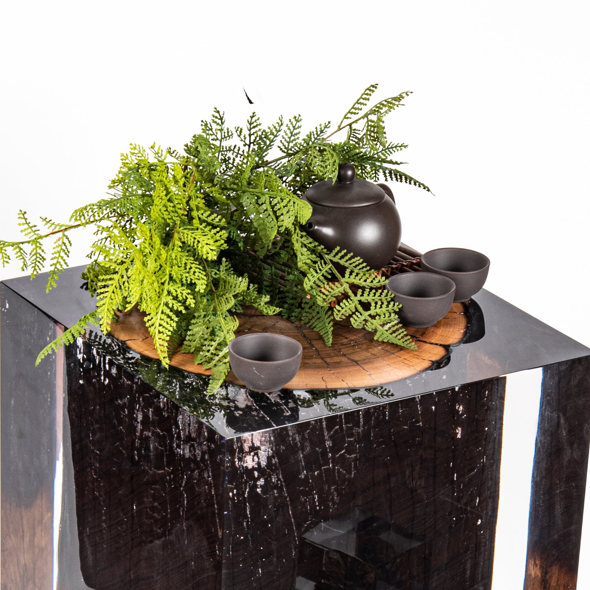 The Half-Burned Wood Stump Stool Table harmonizes nature’s rawness with our craftsmanship. Handcrafted with Lumière Creation's signature acrylic, this piece captures a dramatic moment where fire meets wood—freezing the transformation in time. The darkened char contrasts with the natural wood tone, while the clear material preserved every organic crack and burned mark, creating the honest visual of strength and fragility of nature.