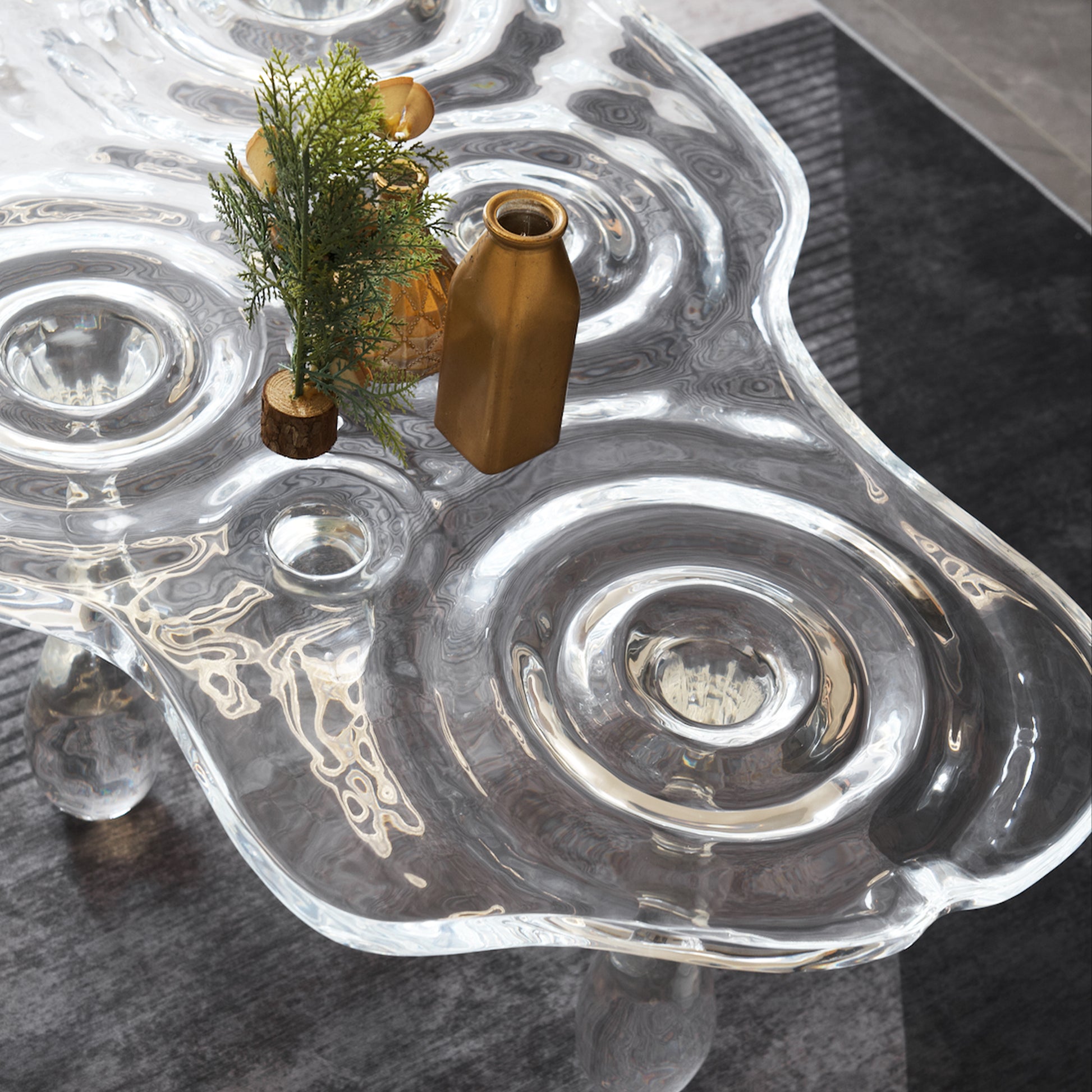 More than just a functional piece, this transparent table is also as an artistic centerpiece of living room, make it ideal for home styling in creative interiors. A blend of sculptural art and nature scene, the Water Symphony Table brings harmony and tranquility into your living space. Let your home resonate with the calm melody of water's timeless symphony.