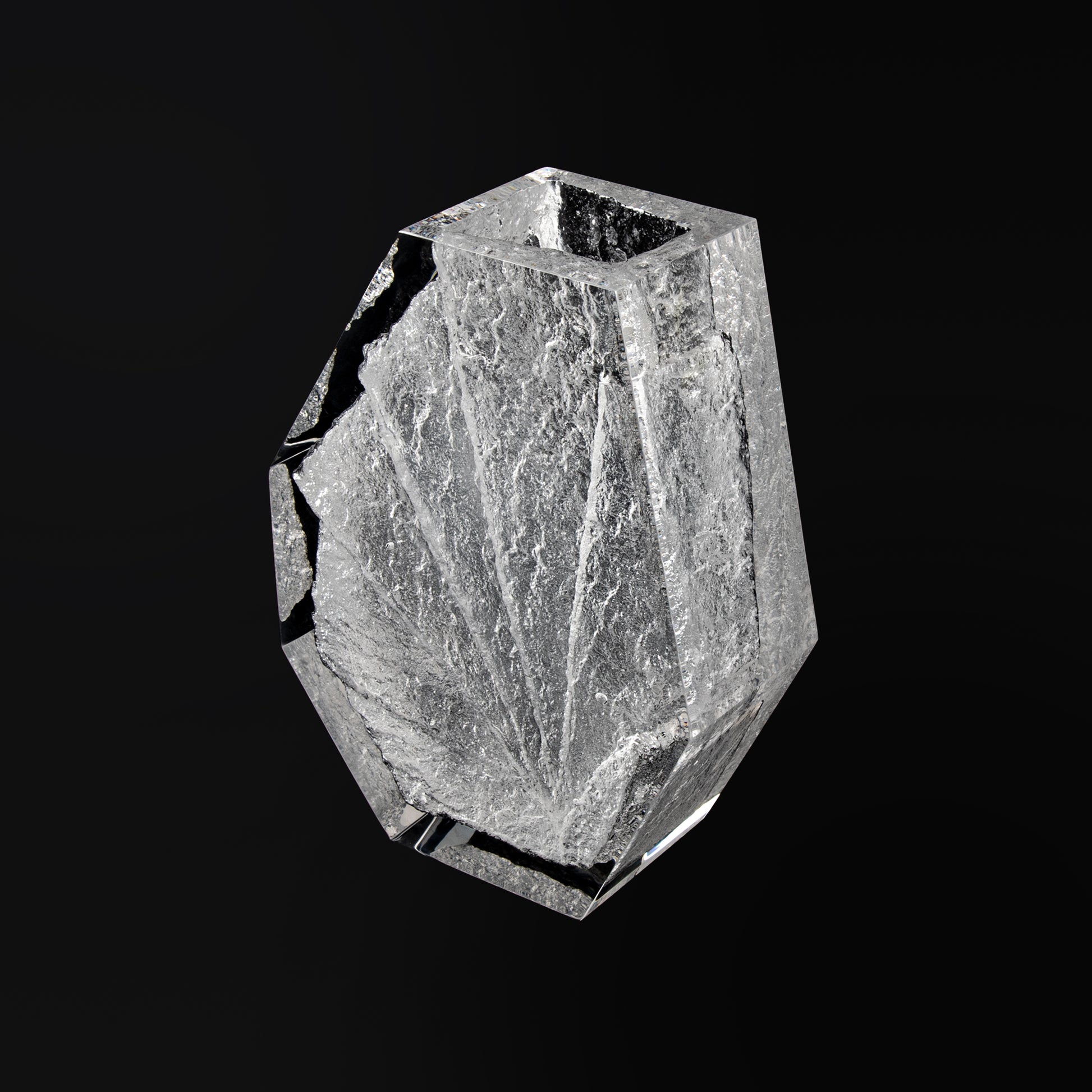 Reimagining the form of a shell with clean geometric lines, this Seashell Art vase combines coastal wild beauty with modern aesthetics. The rustic texture inside replicates the organic, untamed charms of nature, while the clear acrylic lends it a sleek, contemporary appearance. This contrastive expression of nature and angular transforms this functional piece into a true work of art. Whether styling the table alone or using it with florals, this vase is a go-to option for art deco homes to bring nature, art and modern together in your home.